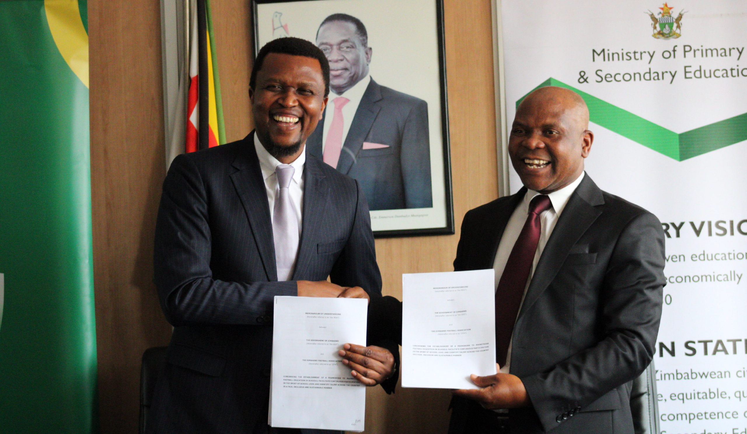 Signed in Harare, the MOU establishes a national framework for cooperation between the two institutions to integrate structured football programmes within the education system, ensuring that pupils across all provinces and districts have access to organised football activities as part of their holistic learning experience.